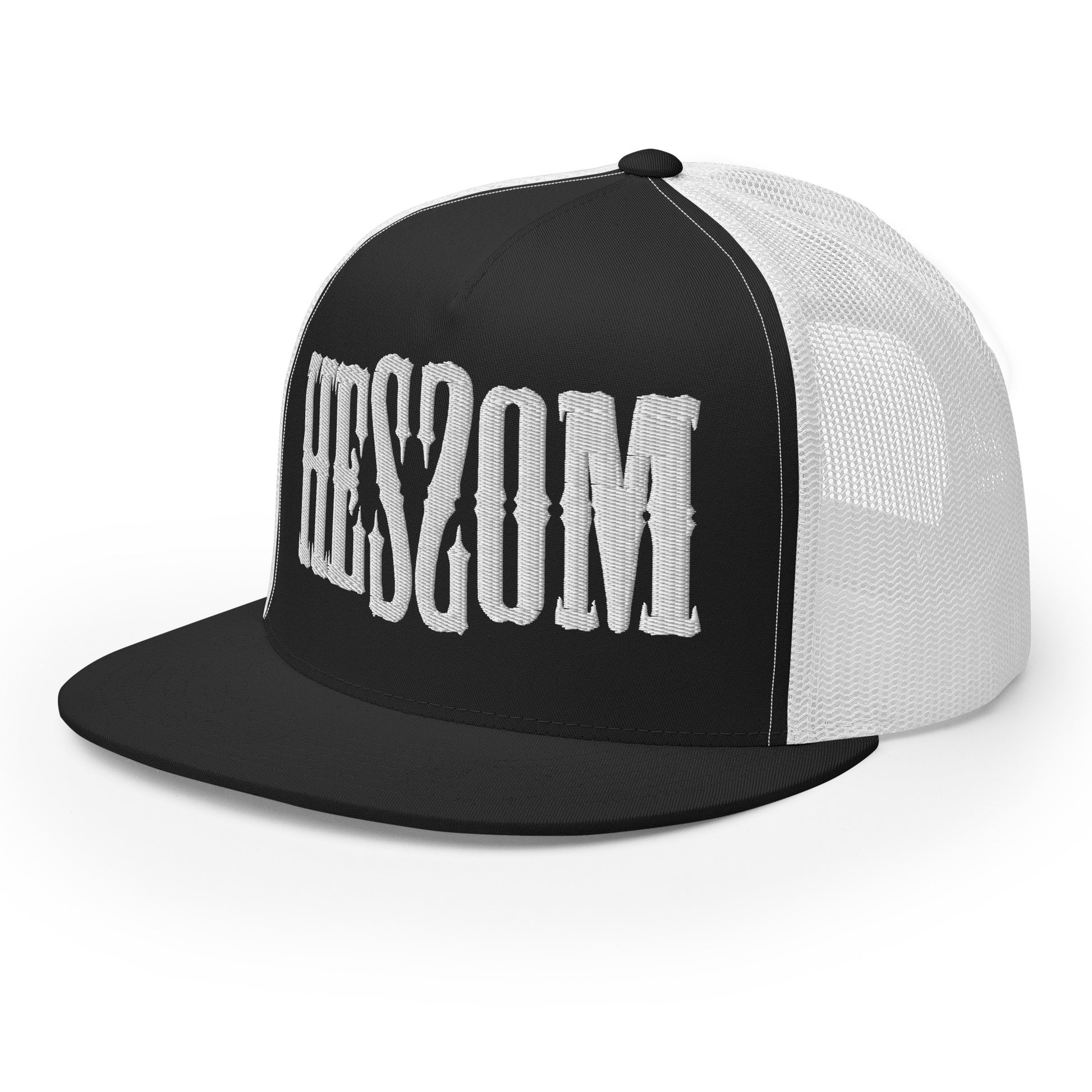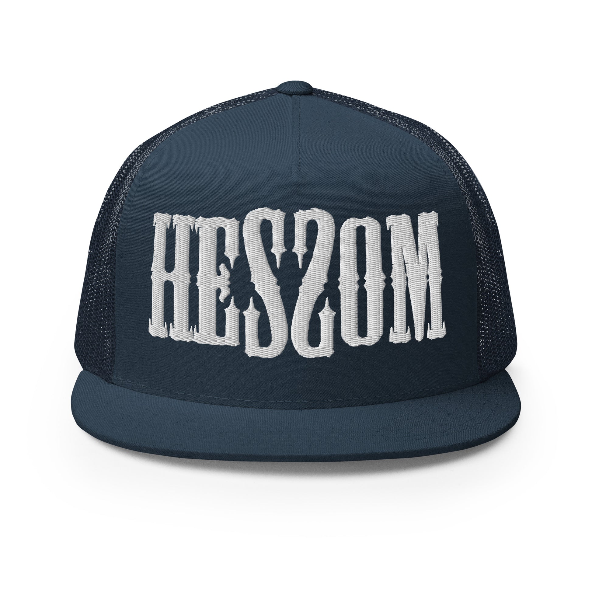 Classic trucker cap style with a cool fabric blend. Flat embroidery.